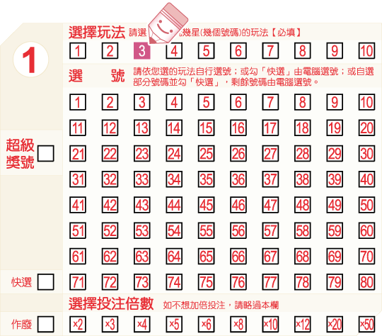*「1星」玩法代表您只必須填選一個號碼,作為您的選號;「2星」玩法代表您必須填選二個號碼,作